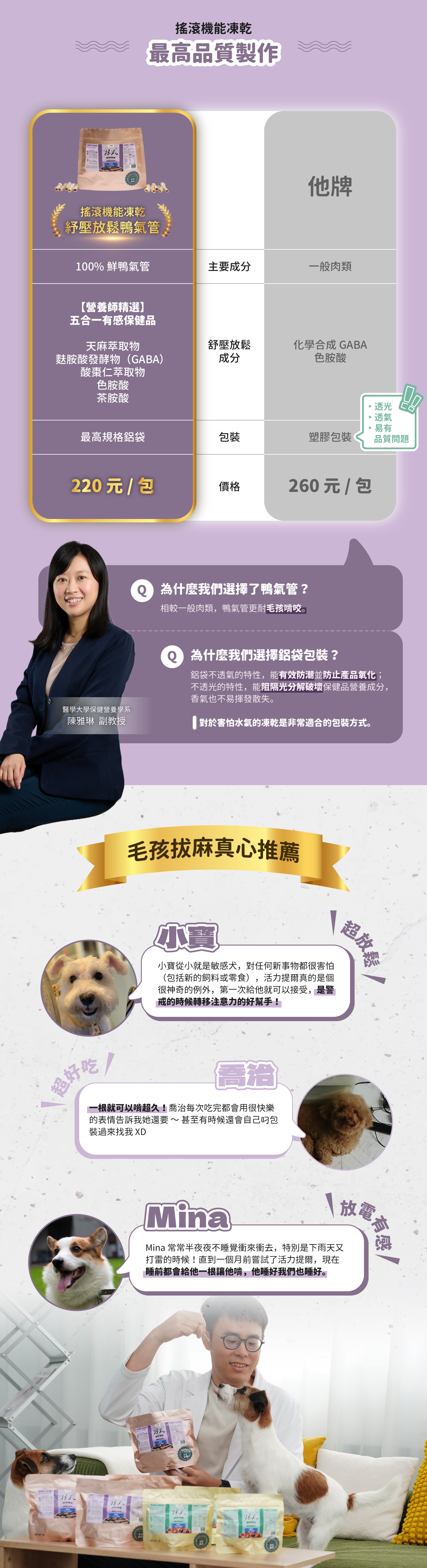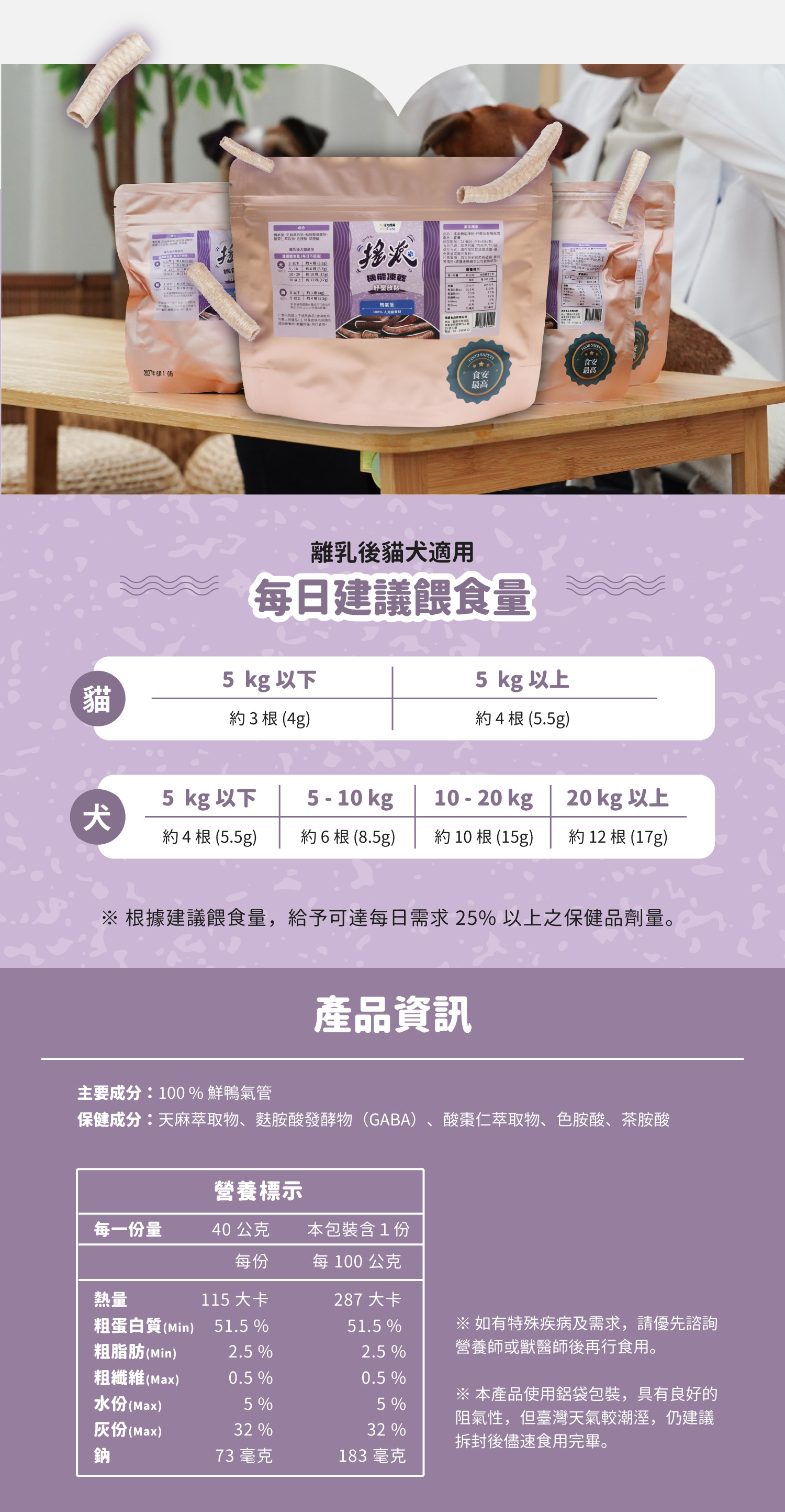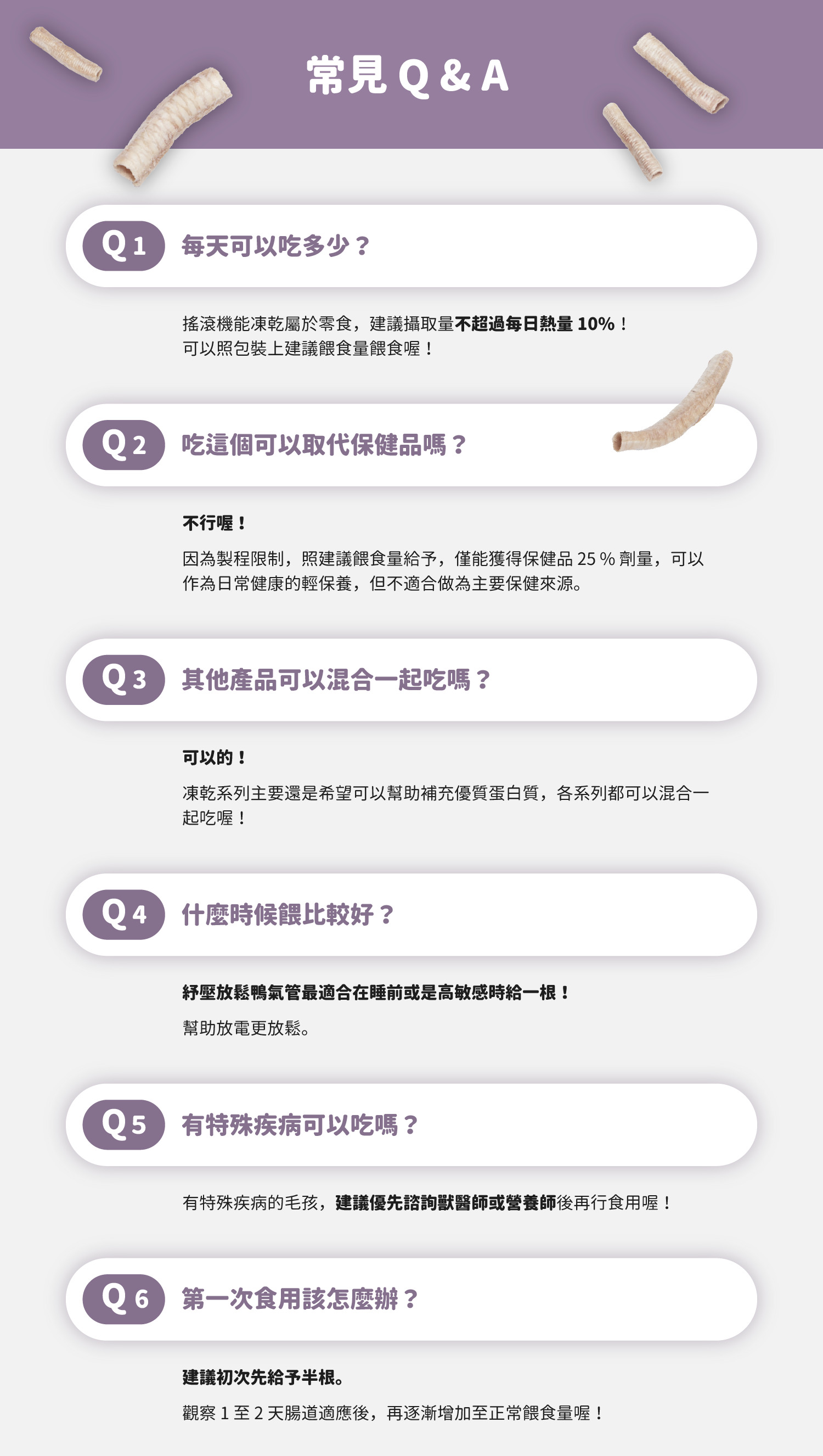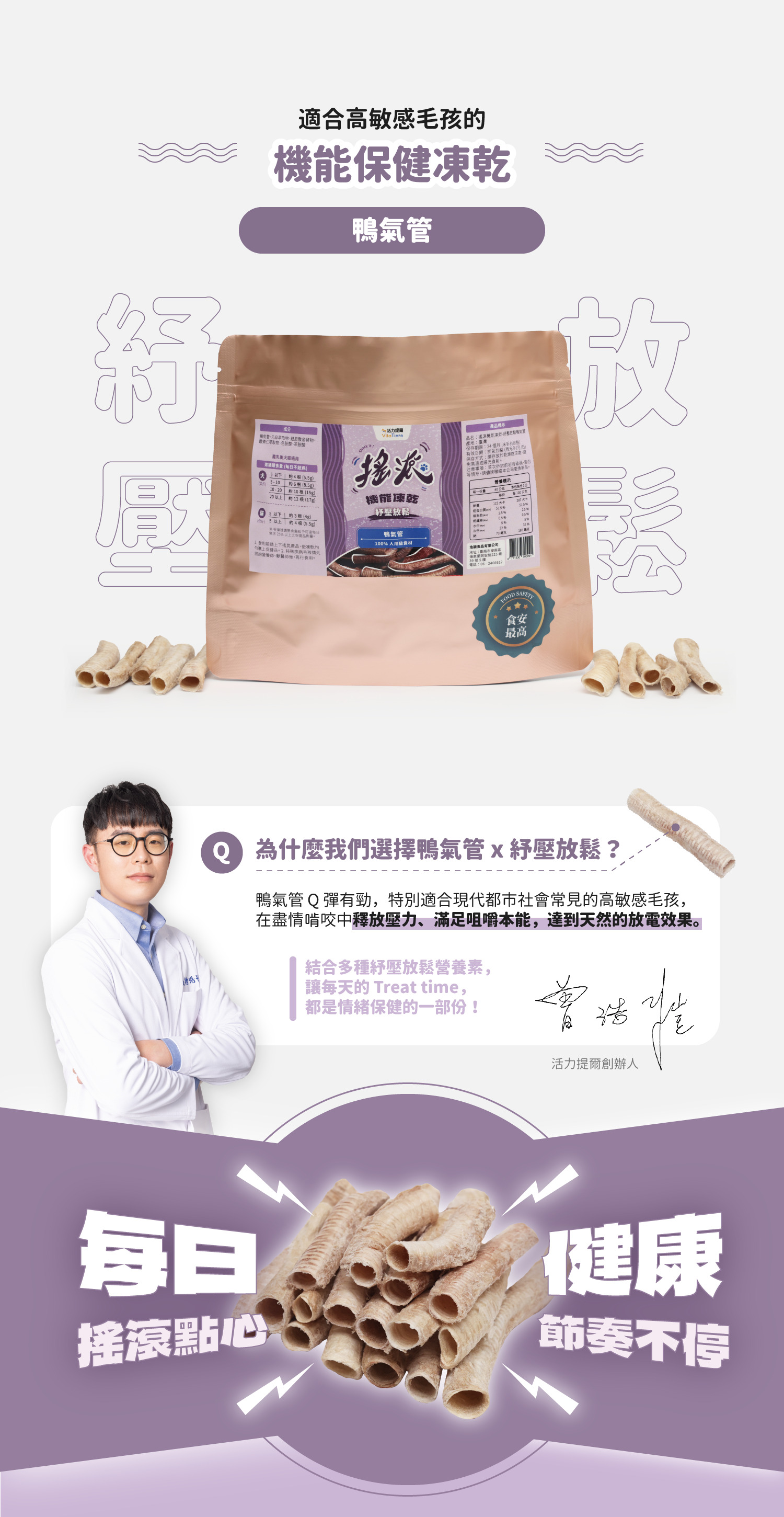 鴨氣管Q彈有勁特別適合現代都市社會常見的高敏感毛孩,在盡情啃咬中釋放壓力、滿足咀嚼本能並達到天然的放電效果。
