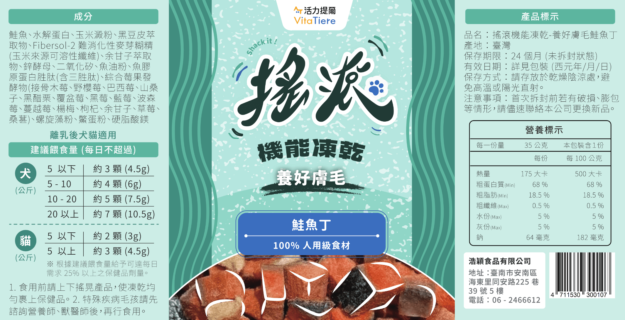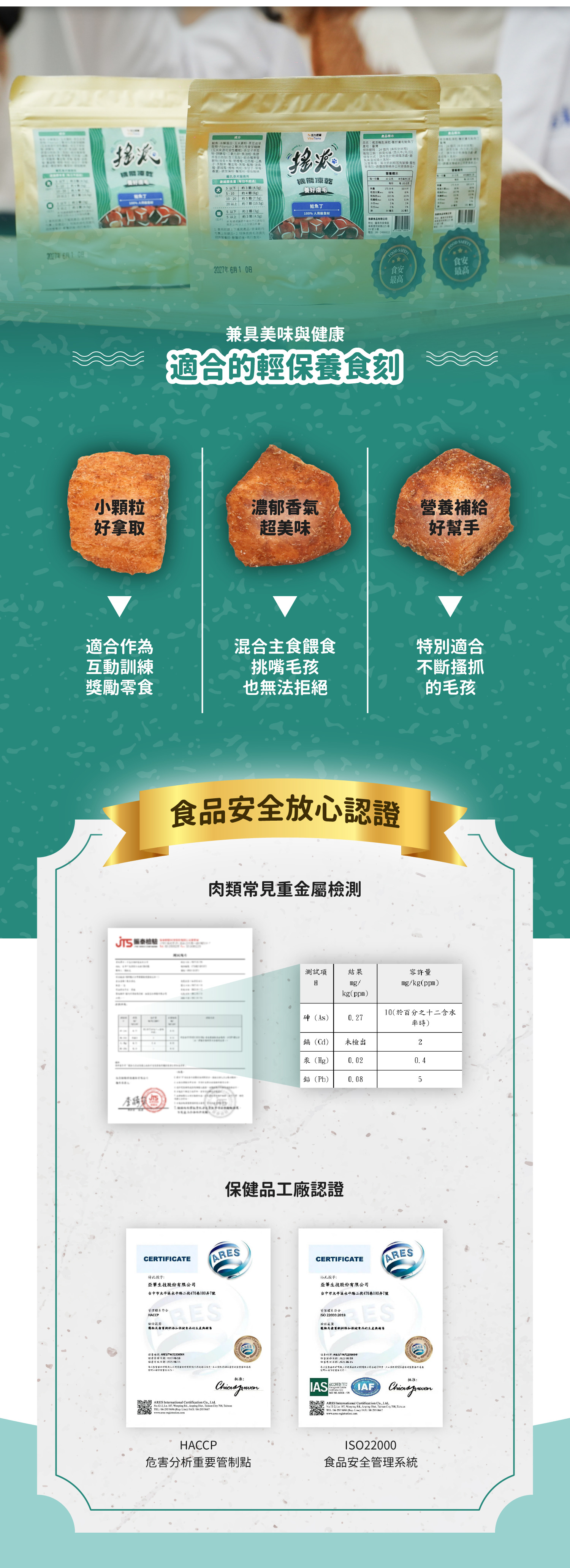 - 人用食品級原食材製作生產,高適口性與極低含水率